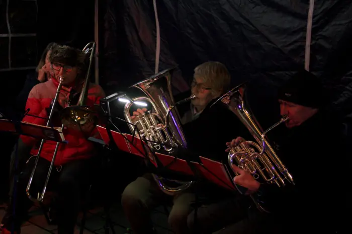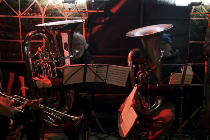 Once the countdown finished and the Square glowed with its new festive lights, Totnes Brass Band rounded off the event superbly. The band has been performing for over 50 years and is now welcoming new members to continue its proud tradition. If you’re interested in joining, email Bob the organiser here.